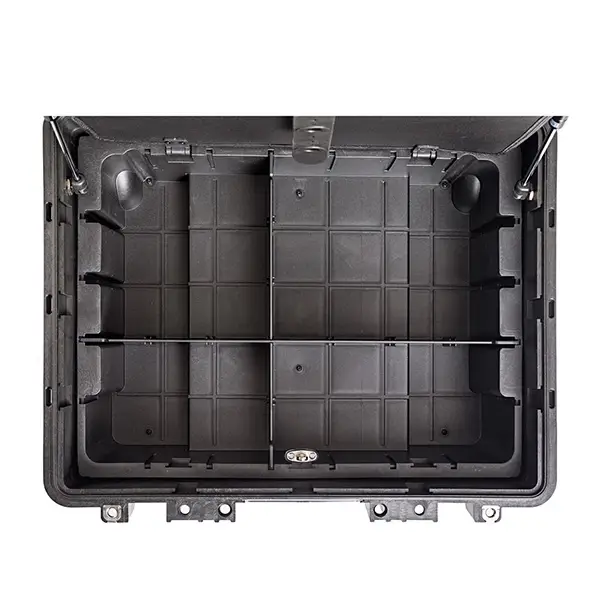 The case is dustproof and waterproof and equipped with a pressure equalization valve. Particularly suitable for service technicians in offshore environments. The extendable telescopic handle (push-and-pull handle), the rubber side handle, and the smooth-running latches are user-friendly. The case is equipped with wheels. The tool panels are screwed on.