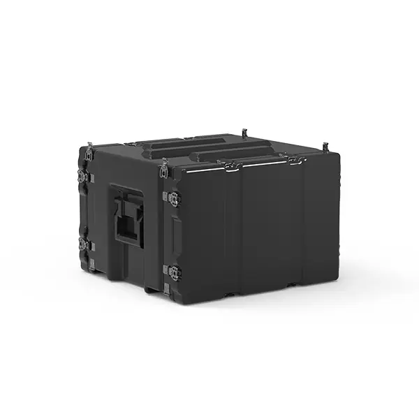 Peli ProRack cases are lightweight, space-saving front and back opening shipping containers (no shock absorber/spring loaded rack mounting system) for rugged equipment in the field.
