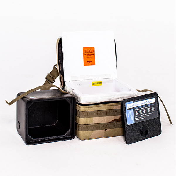 Golden Hour™ met temperatuurregeling transporteren veilig, betrouwbaar en veilig bloed en bloedplaatjes waar u ze het meest nodig hebt, ongeacht extreme omstandigheden. Met deze lichtgewicht militaire bloedcontainers kunt u levensreddende bloedproducten binnen een cruciaal tijdsbestek op de plaats van verwonding afleveren.